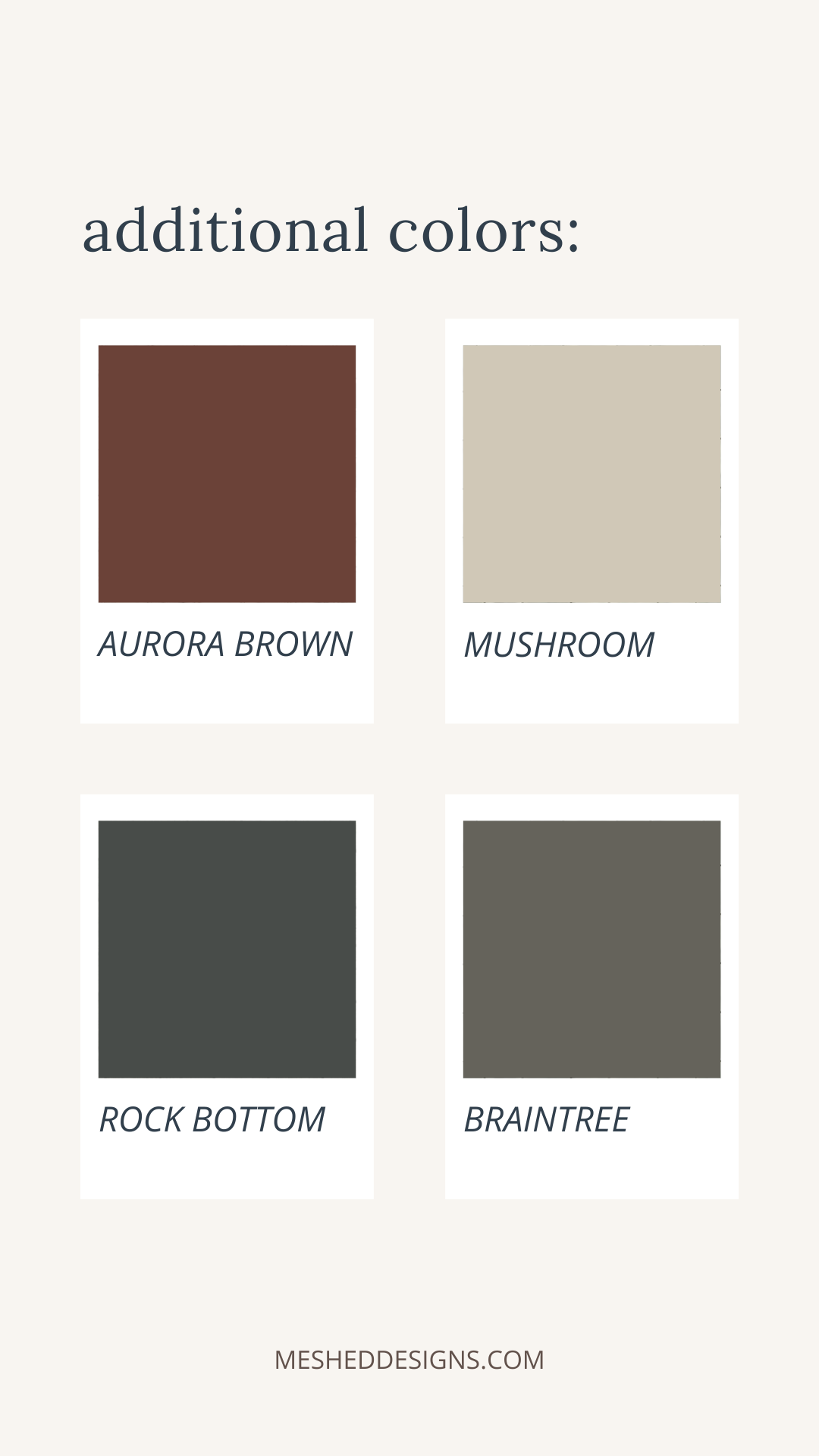| SW 6068 Brevity Brown | A lighter, grounding neutral perfect for trim or adjacent walls |